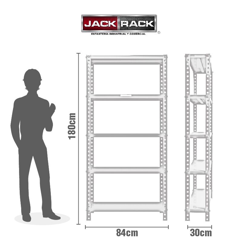 Estante de 5 entrepaños calibre 26 con refuerzo, postes cal. 18, Fabricado en lámina de acero rolada en frío acabado de pintura en polvo aplicada electrostáticamente y termoendurecida a 200°C