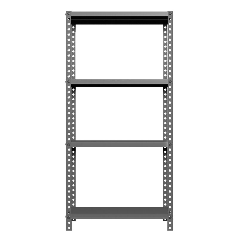 Estante de 4 entrepaños calibre 26 con refuerzo, postes cal. 18, Fabricado en lámina de acero rolada en frío acabado de pintura en polvo aplicada electrostáticamente y termoendurecida a 200°C
