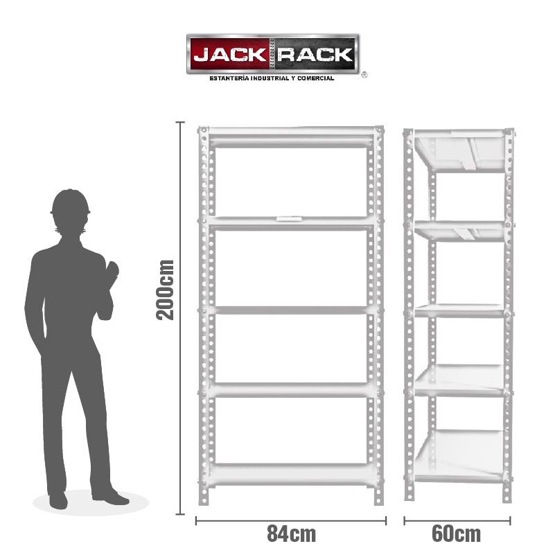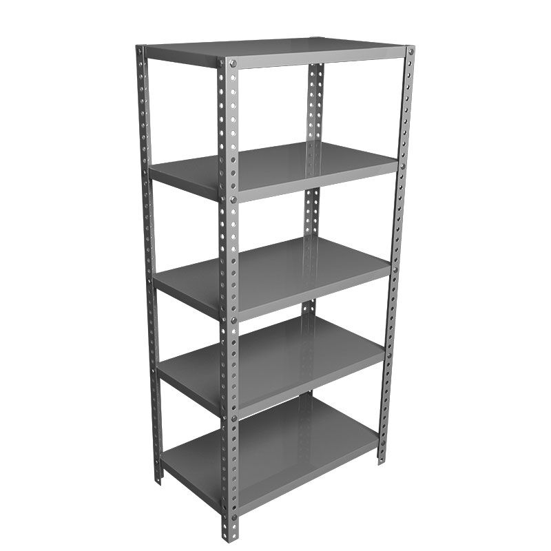 Estante de 5 entrepaños calibre 26 con refuerzo, postes cal. 18, Fabricado en lámina de acero rolada en frío acabado de pintura en polvo aplicada electrostáticamente y termoendurecida a 200°C